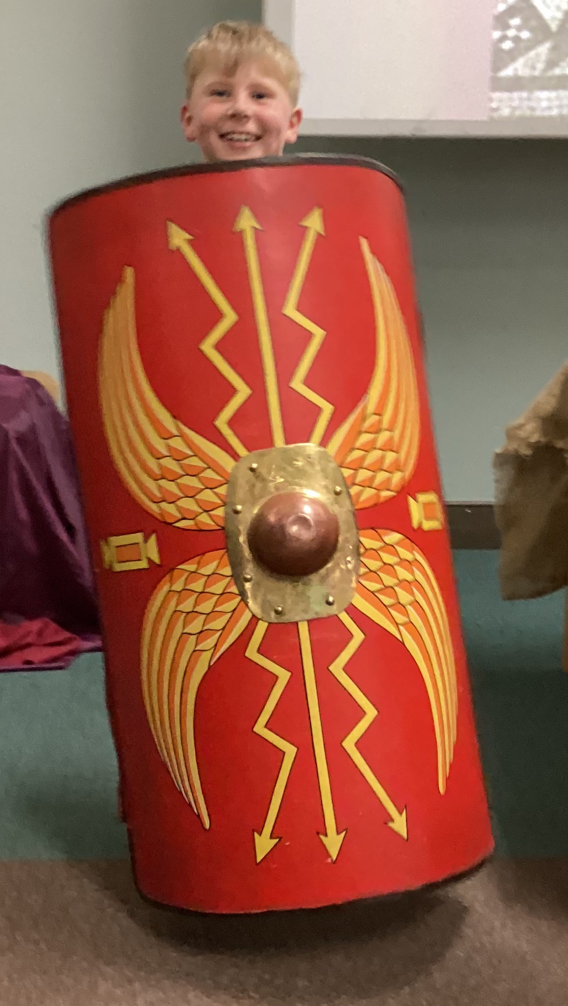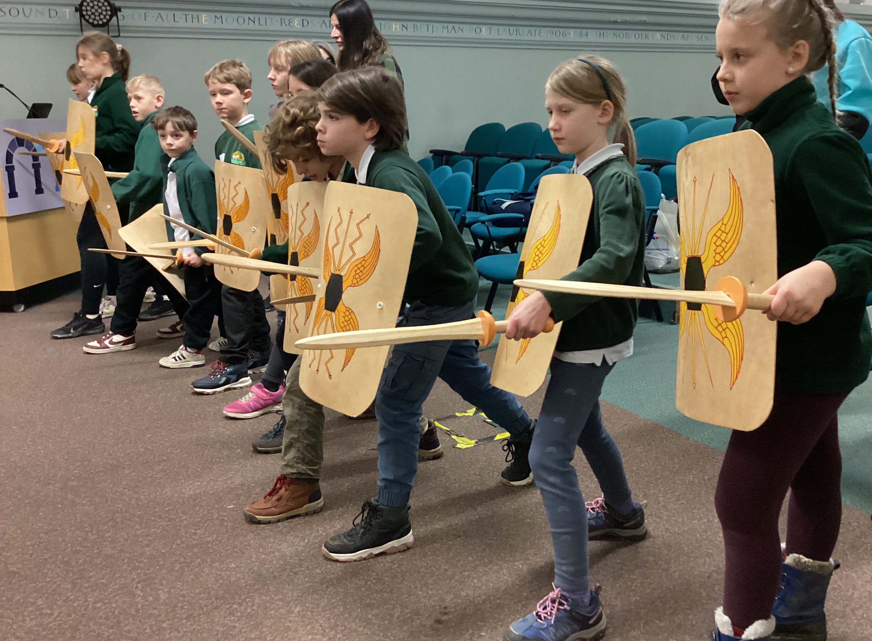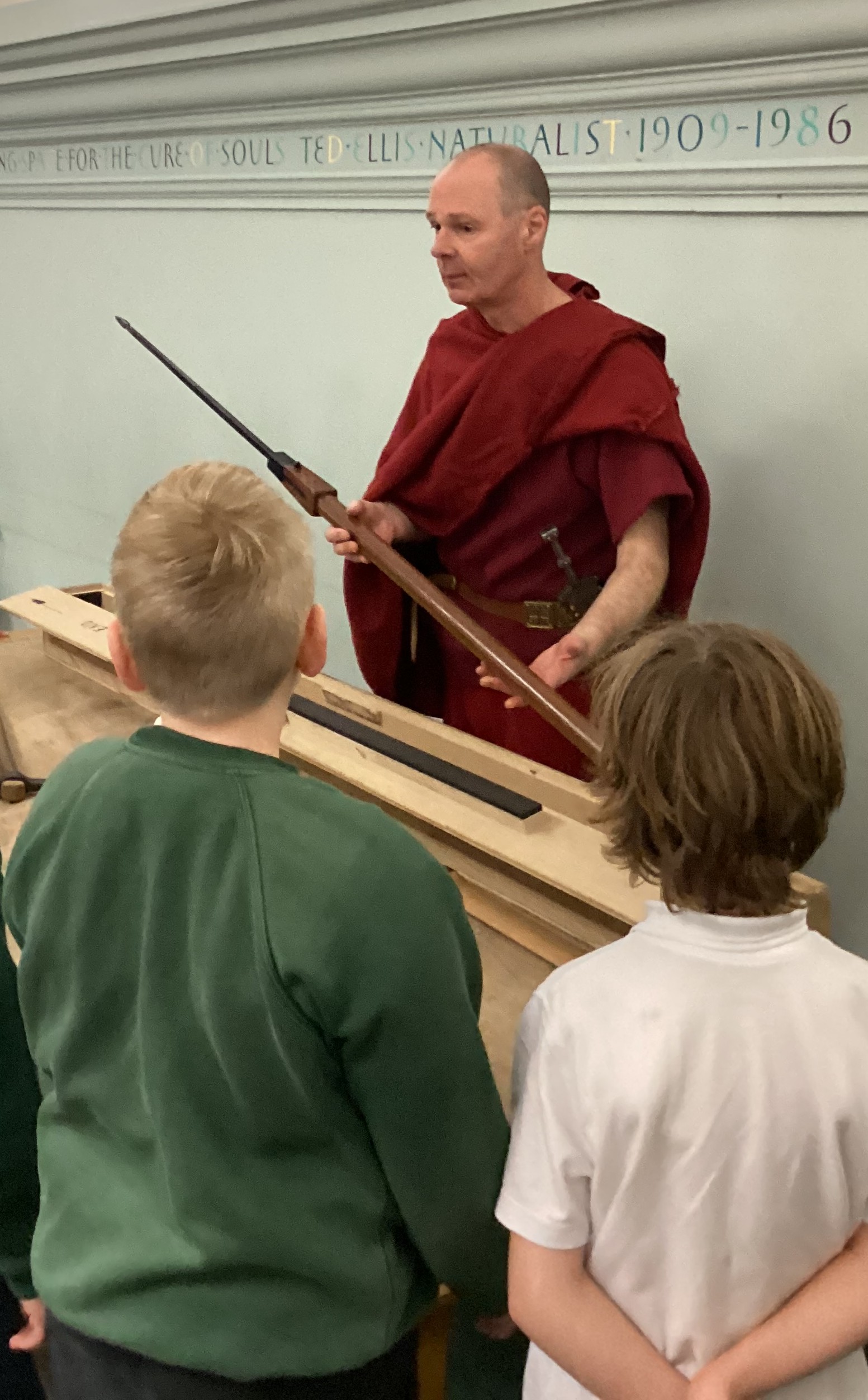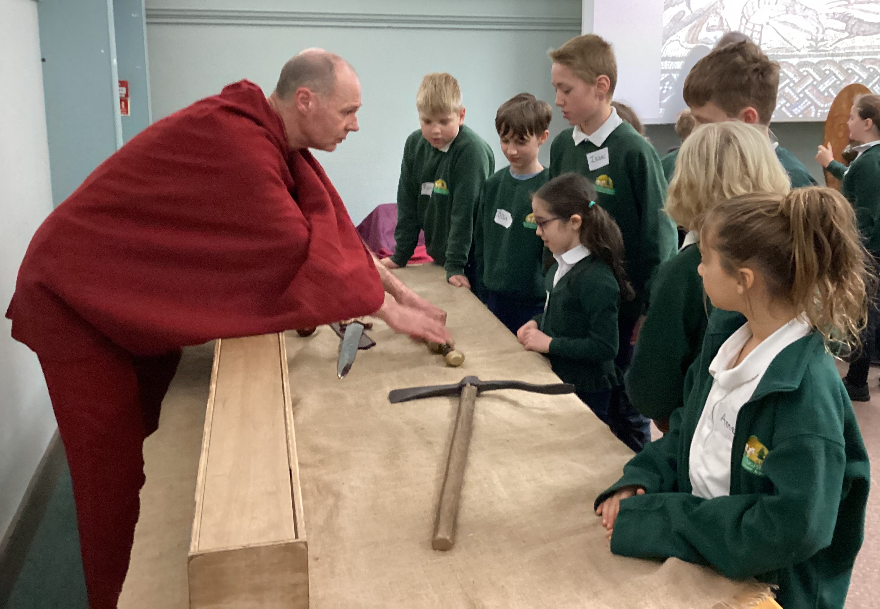 The morning was spent at Norwich Castle, where the children took part in a series of four engaging workshops that brought Roman Britain vividly to life. Our first workshop was led by a Roman centurion named Marcus, who introduced us to life as a Roman soldier. He shared examples of Roman weapons, armour and small personal items, carefully comparing them with those used by the Iceni. The children learned how the Iceni fought, lining up in two groups to practise their battle cries, before exploring the contrasting Roman approach to warfare. Marcus demonstrated how Roman soldiers were highly trained, fought in organised ranks, formed a shield wall and used controlled stabbing movements, all working together as a unit.