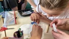 The children in Amazon Class found out that casein plastic, which was commonly used at the start of the 20th Century to make buttons, buckles and other plastic trinkets, can be made by mixing warm milk and white vinegar. The experiment was part